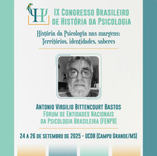 18h30 às 20h - Conferência de abertura do IX Congresso Brasileiro de História da Psicologia (IX CBHP)